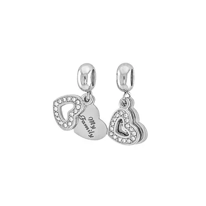 Berloque de aço inoxidável coração duplo “my family”. Material hipoalergênico.