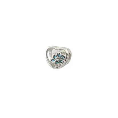 Berloque de aço inoxidável coração vazado com patinha azul. Material hipoalergênico.