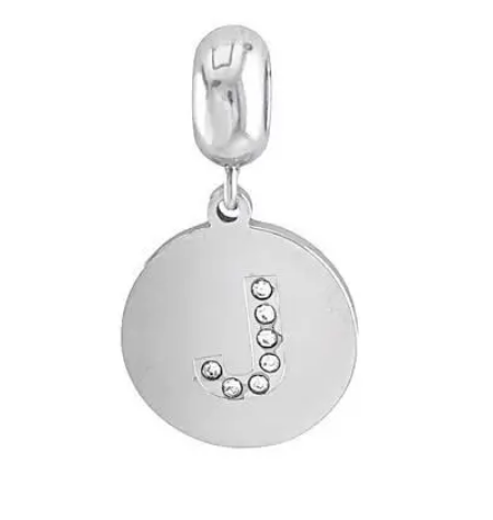 Berloque de aço inoxidável medalha letra J. Material hipoalergênico.