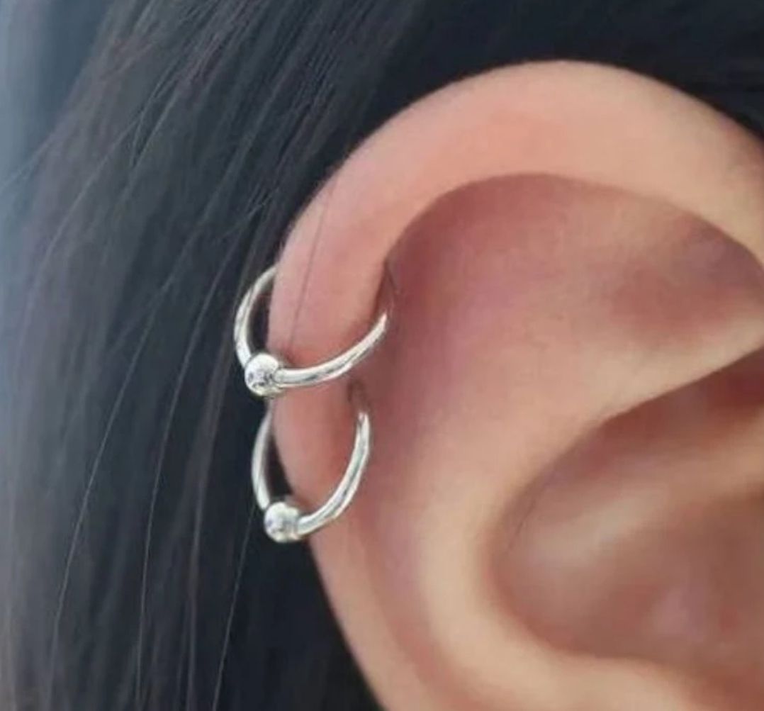 Piercing de aço inoxidável aro com uma bolinha. Tamanho do aro: 8mm. Material hipoalergênico.