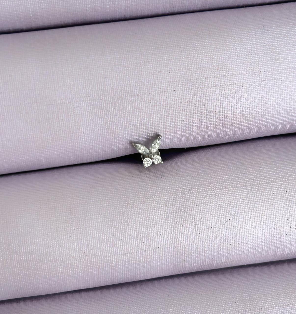 Piercing de aço inoxidável borboleta com cristais labret. Material hipoalergênico.