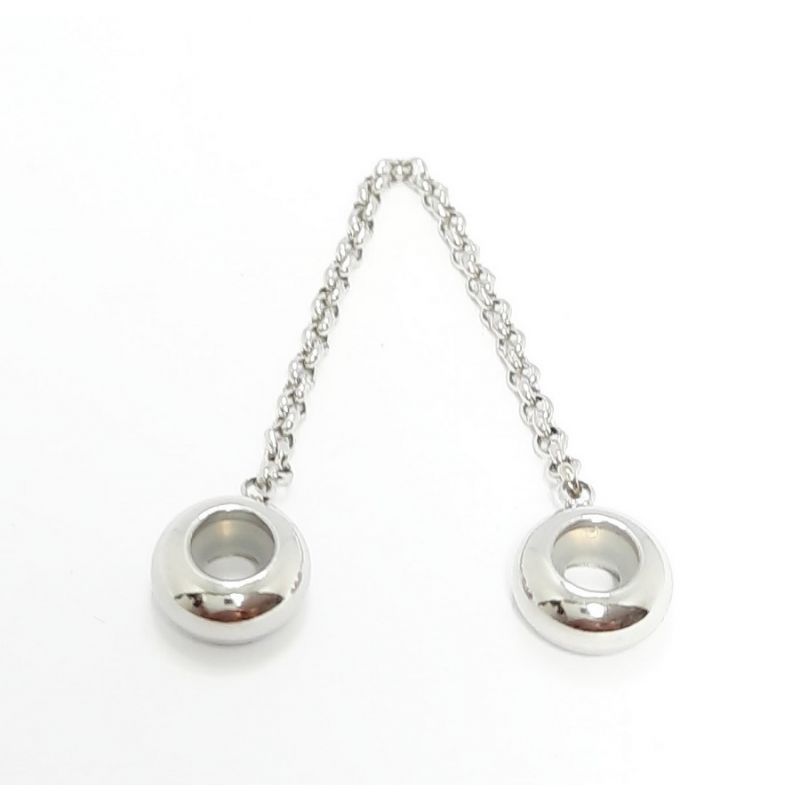 Trava dupla de aço inoxidável com corrente. Material hipoalergênico.