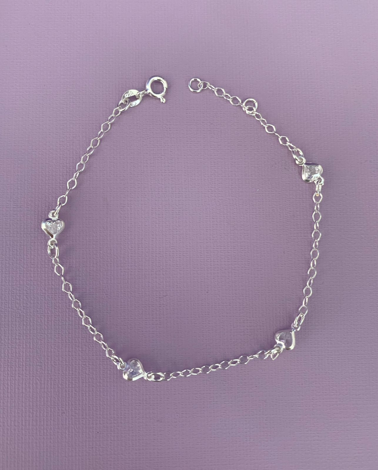 Pulseira de prata 925 4 corações cristal entremeio.